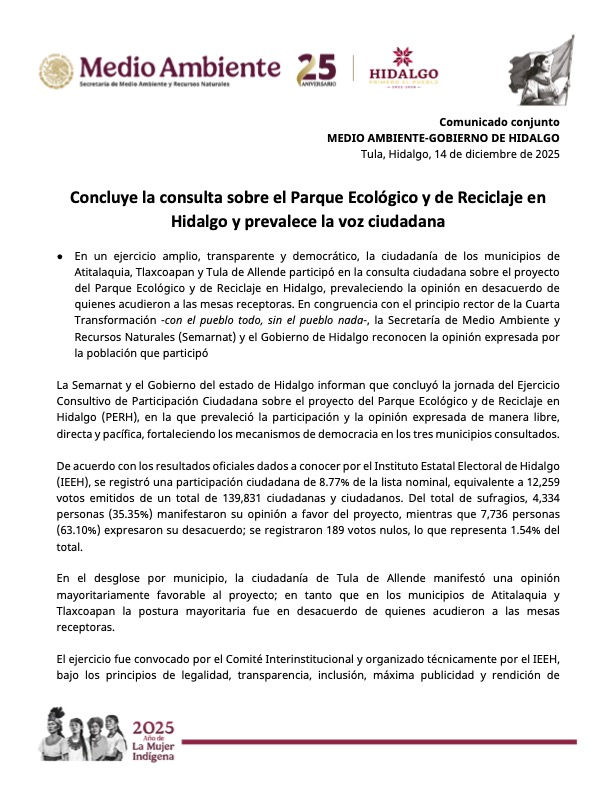Comunicado conjunto MEDIO AMBIENTE - GOBIERNO DE HIDALGO